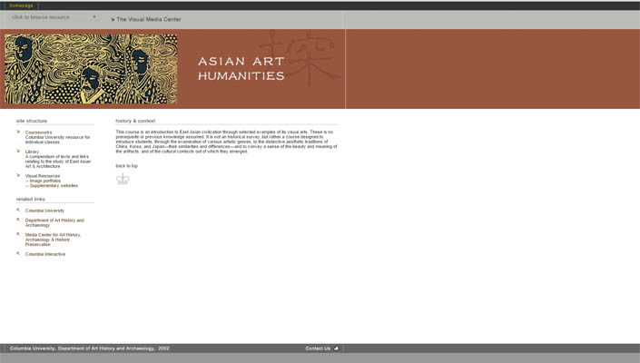 Course monograph with links to Courseworks, Mnemosyne, CLIO, and other Media Center sites.